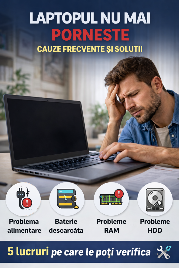 Laptopul nu mai pornește – cauze frecvente și soluții Un ghid util pentru a înțelege de ce laptopul nu mai pornește și ce poți face...